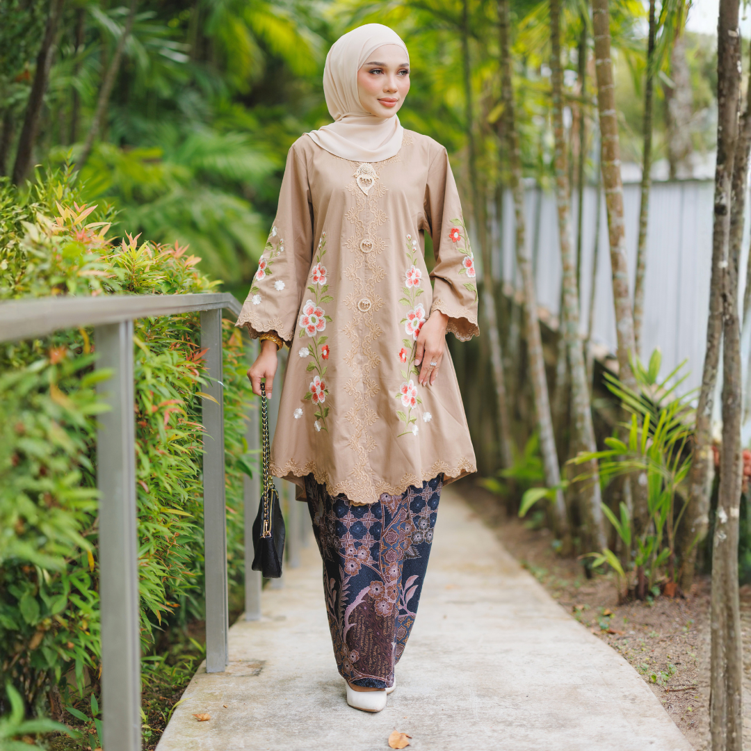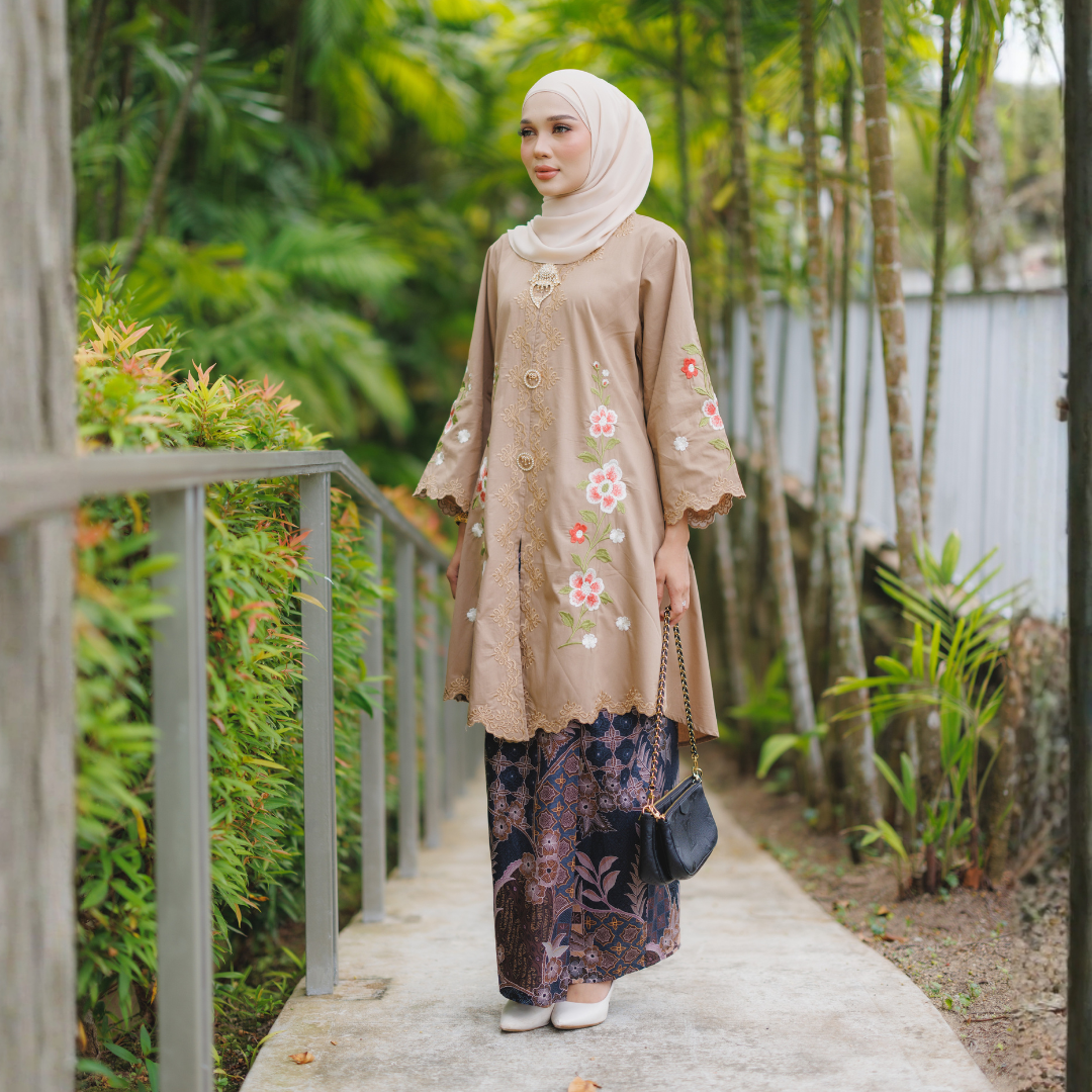 Diperbuat daripada kain cotton berkualiti tinggi yang selesa dipakai seharian, diperkemaskan dengan sulaman tebal bermotif bunga yang tampak eksklusif dan anggun.