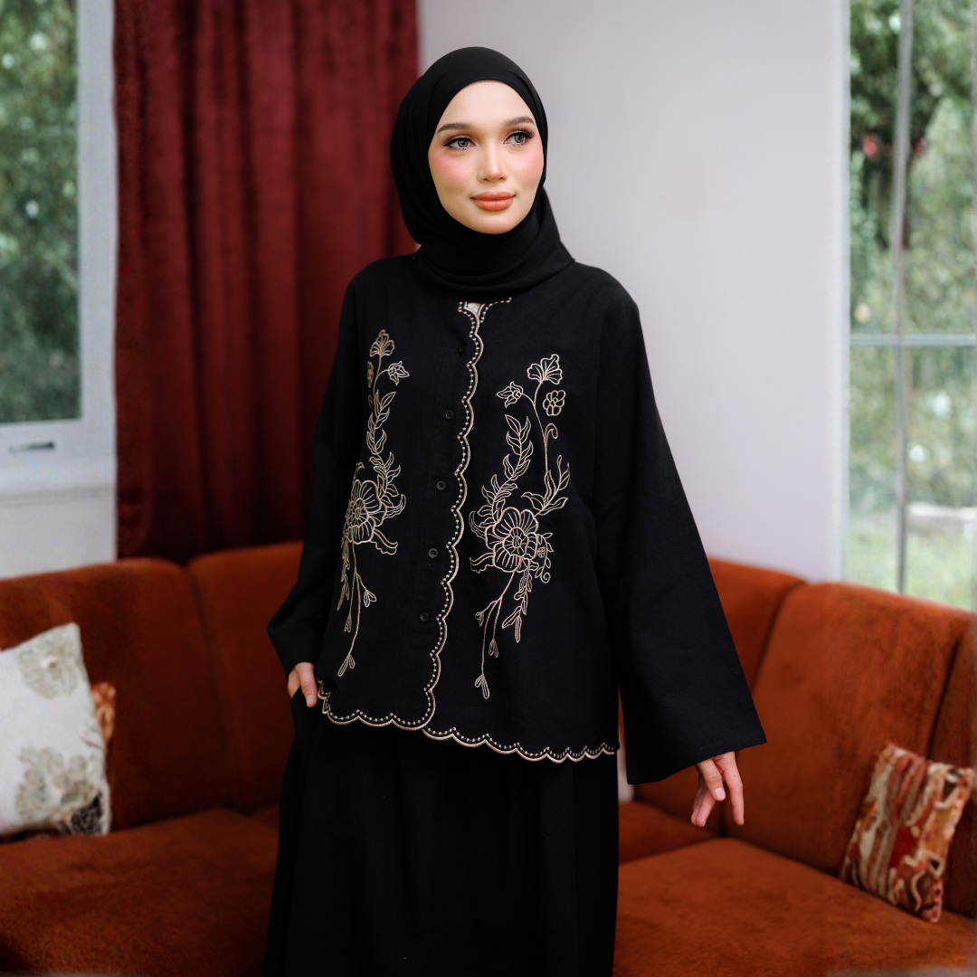 Menampilkan sulam eksklusif di bahagian hadapan, potongan longgar dan flowy memberi keselesaan maksimum sepanjang hari.