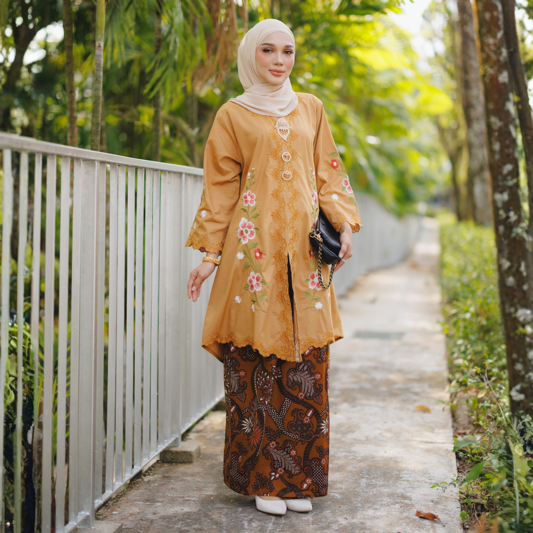 Rekaan kebaya yang longgar dan kemas memberi keselesaan maksimum, sesuai untuk pelbagai bentuk badan serta tampak manis dipakai di pagi hingga ke malam Raya.