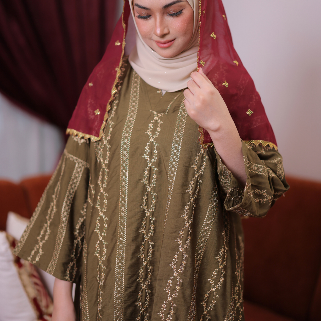 Diperbuat daripada fabrik Cotton Linen yang selesa, ringan dan sesuai dipakai sepanjang hari. Didatangkan dengan sulaman eksklusif serta 5 corak menarik dengan pilihan 5 warna elegan.
