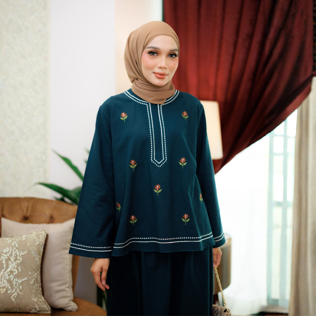 direka dengan sentuhan feminin dan kemasan sulaman yang halus, menjadikan ia pilihan sempurna untuk wanita yang menghargai keselesaan dan gaya.