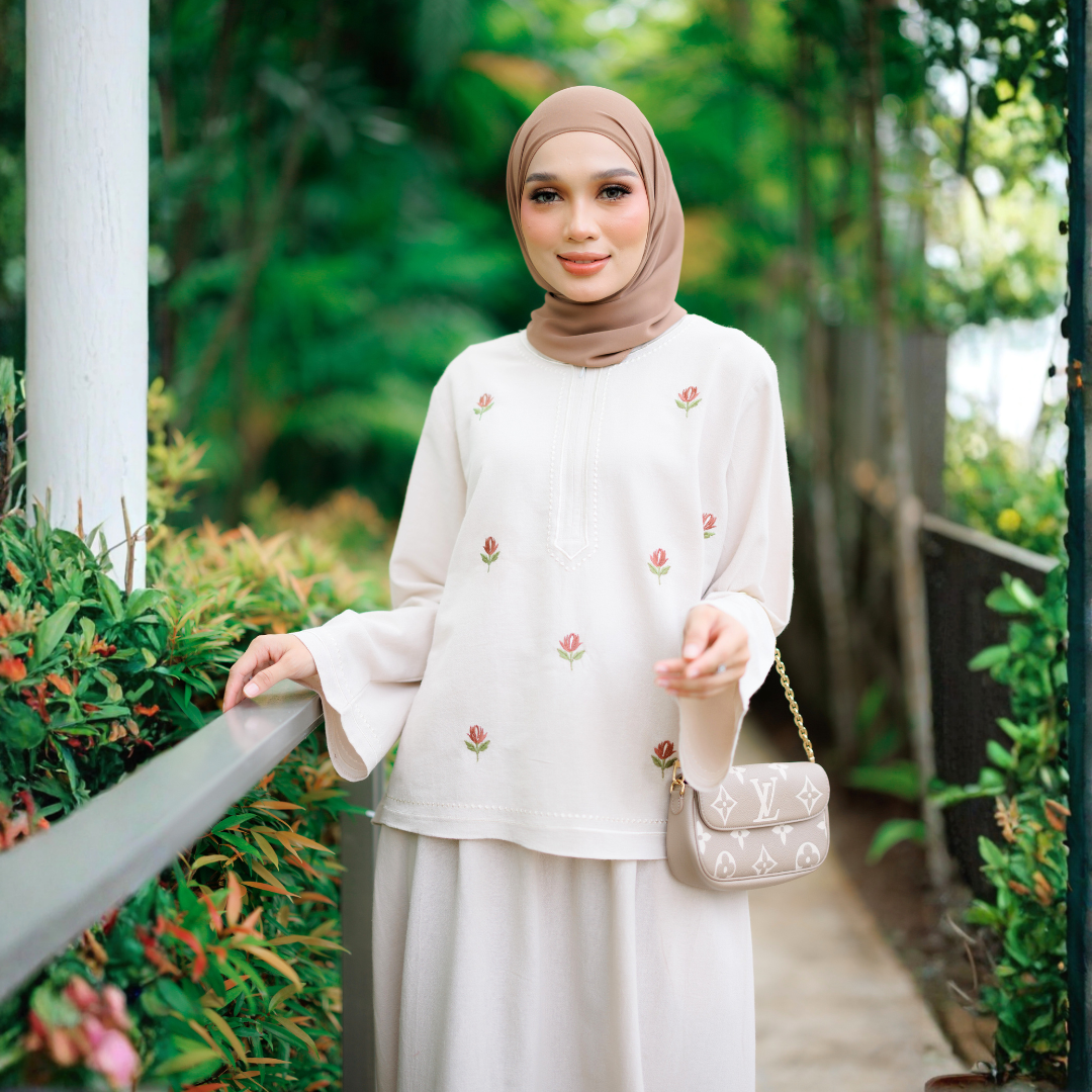 direka dengan sentuhan feminin dan kemasan sulaman yang halus, menjadikan ia pilihan sempurna untuk wanita yang menghargai keselesaan dan gaya.