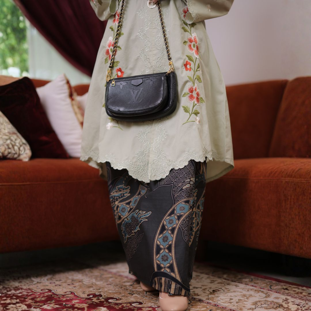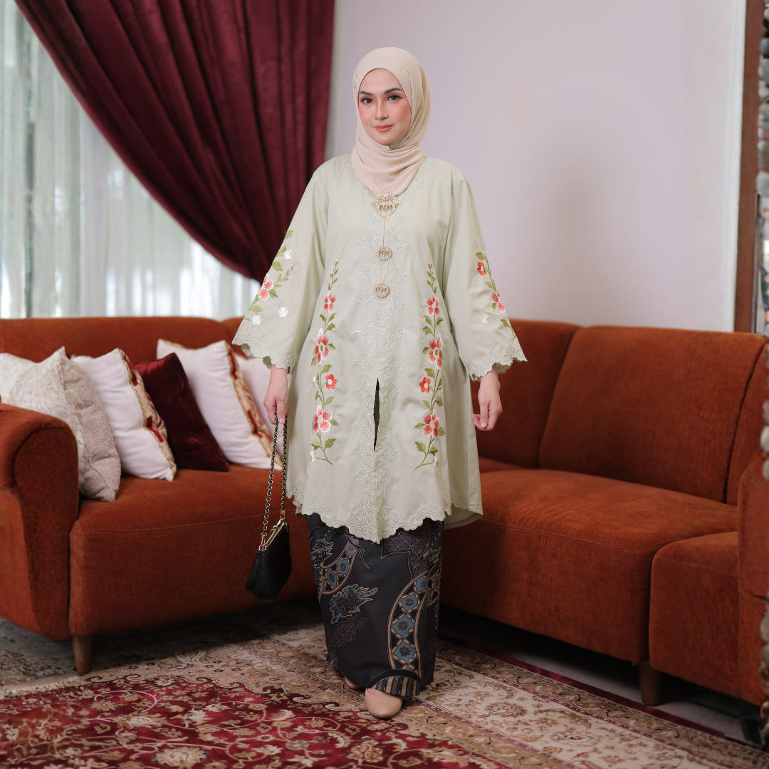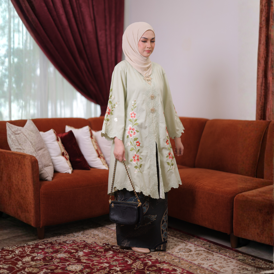Diperbuat daripada kain cotton berkualiti tinggi yang selesa dipakai seharian, diperkemaskan dengan sulaman tebal bermotif bunga yang tampak eksklusif dan anggun.