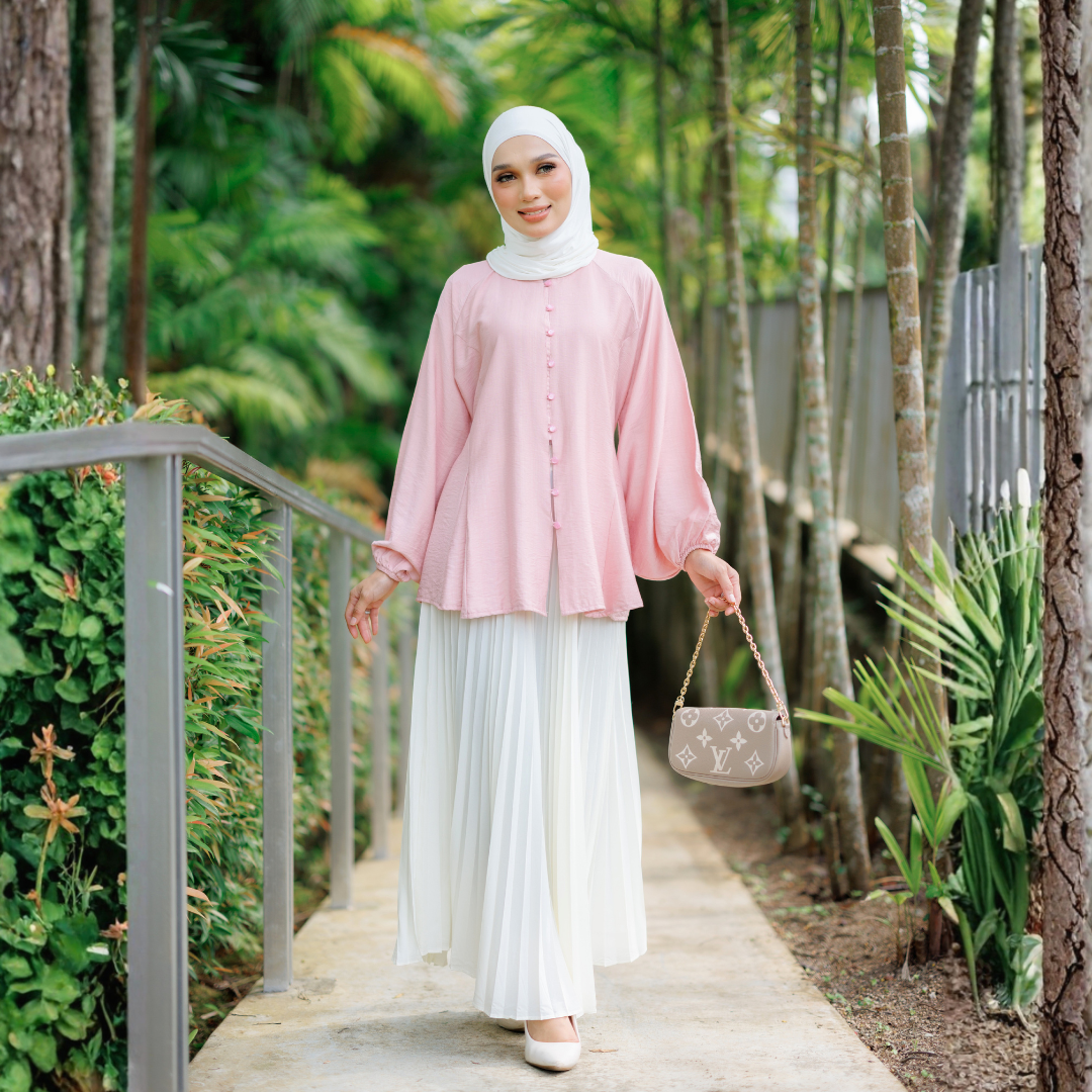 Top Mairaa direka dengan sentuhan feminin lembut dan potongan yang flattering untuk pelbagai bentuk badan. Dihasilkan daripada fabrik Cotton Linen Luxe yang berkualiti tinggi, fabriknya terasa sejuk, ringan dan memberi jatuhan yang cantik serta tampak mewah bila digayakan.