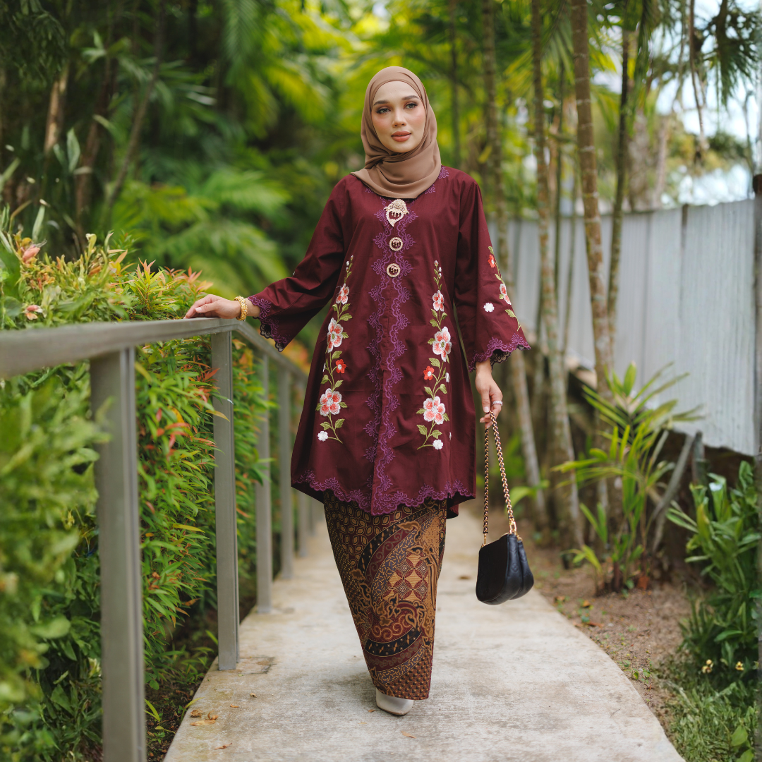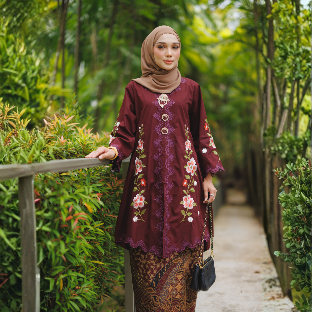 Diperbuat daripada kain cotton berkualiti tinggi yang selesa dipakai seharian, diperkemaskan dengan sulaman tebal bermotif bunga yang tampak eksklusif dan anggun.