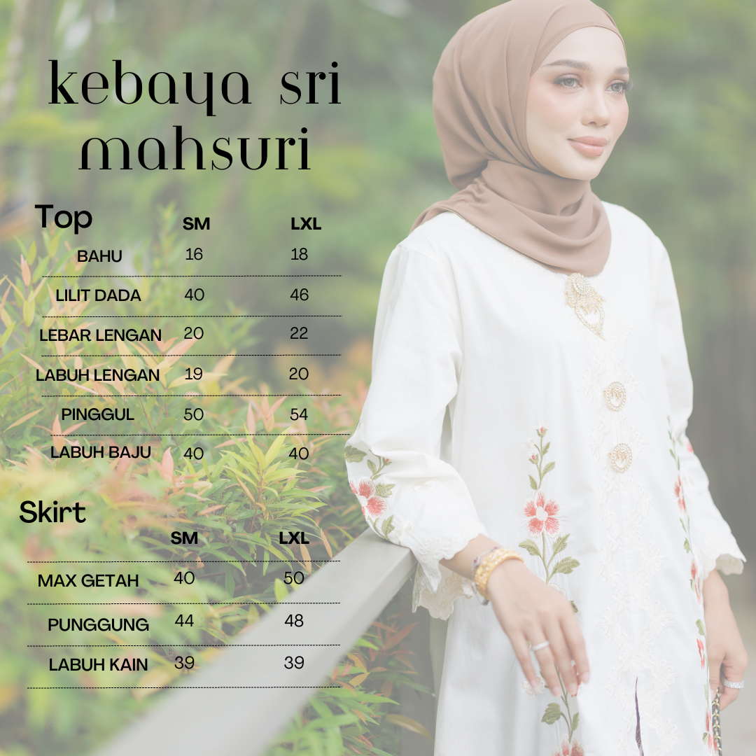 Rekaan kebaya yang longgar dan kemas memberi keselesaan maksimum, sesuai untuk pelbagai bentuk badan serta tampak manis dipakai di pagi hingga ke malam Raya.