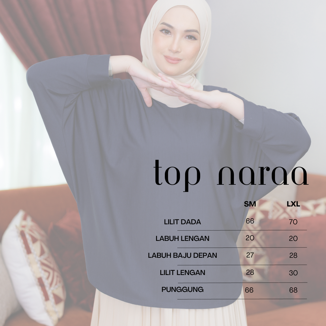 Top NARA direka khas untuk wanita yang menghargai keselesaan cotton tshirt dengan potongan relaxed & batwing yang menawan.