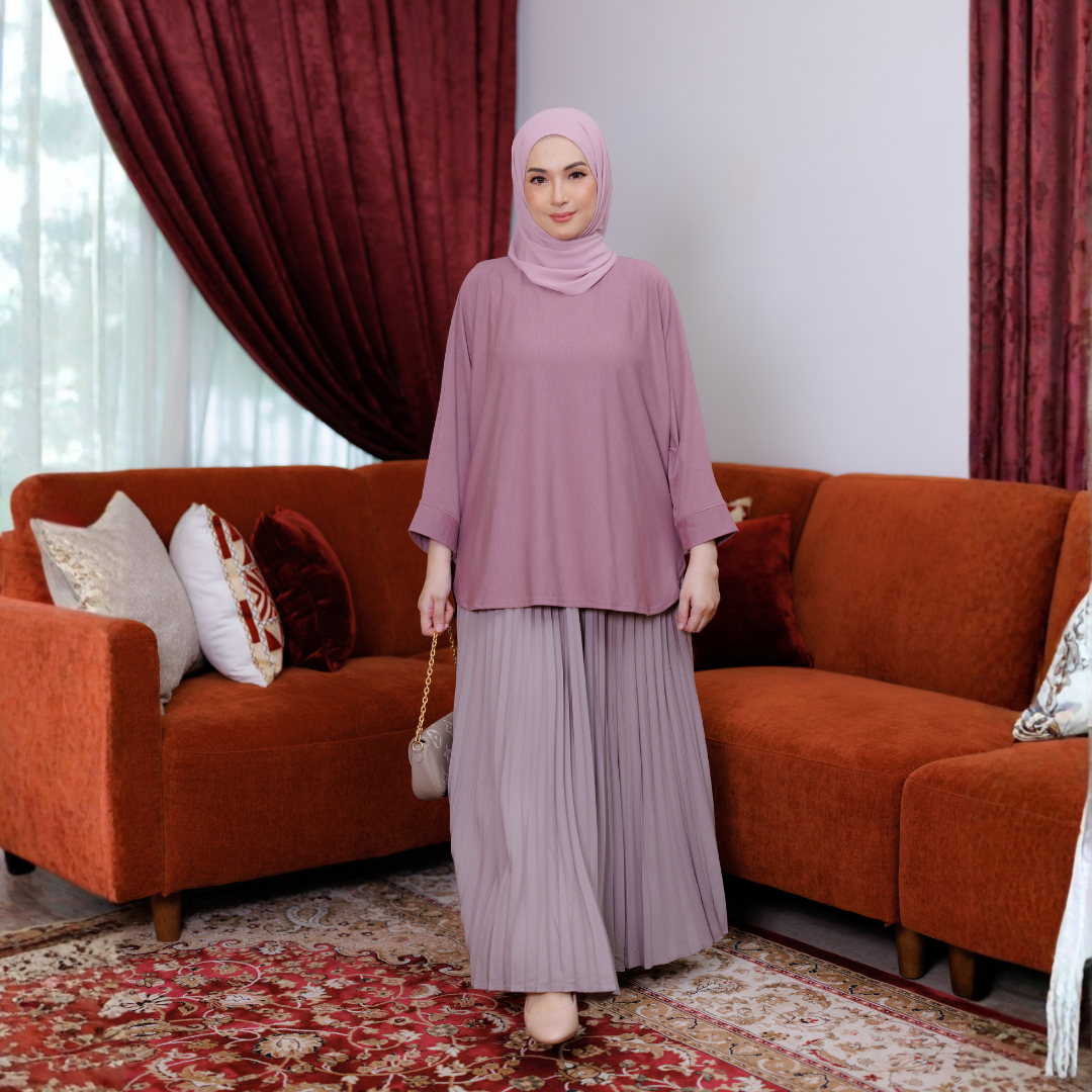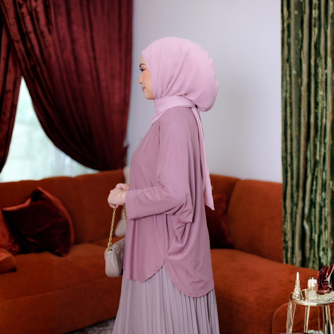 Material cotton t-shirt memberi rasa lembut, sejuk, dan breathable — sesuai untuk cuaca panas mahupun seharian bekerja. Potongan batwing longgar menjadikan ia flattering untuk semua bentuk tubuh, memberi efek flowy dan sopan tanpa melekap di badan.