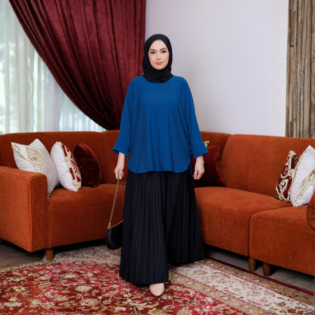 Material cotton t-shirt memberi rasa lembut, sejuk, dan breathable — sesuai untuk cuaca panas mahupun seharian bekerja. Potongan batwing longgar menjadikan ia flattering untuk semua bentuk tubuh, memberi efek flowy dan sopan tanpa melekap di badan.