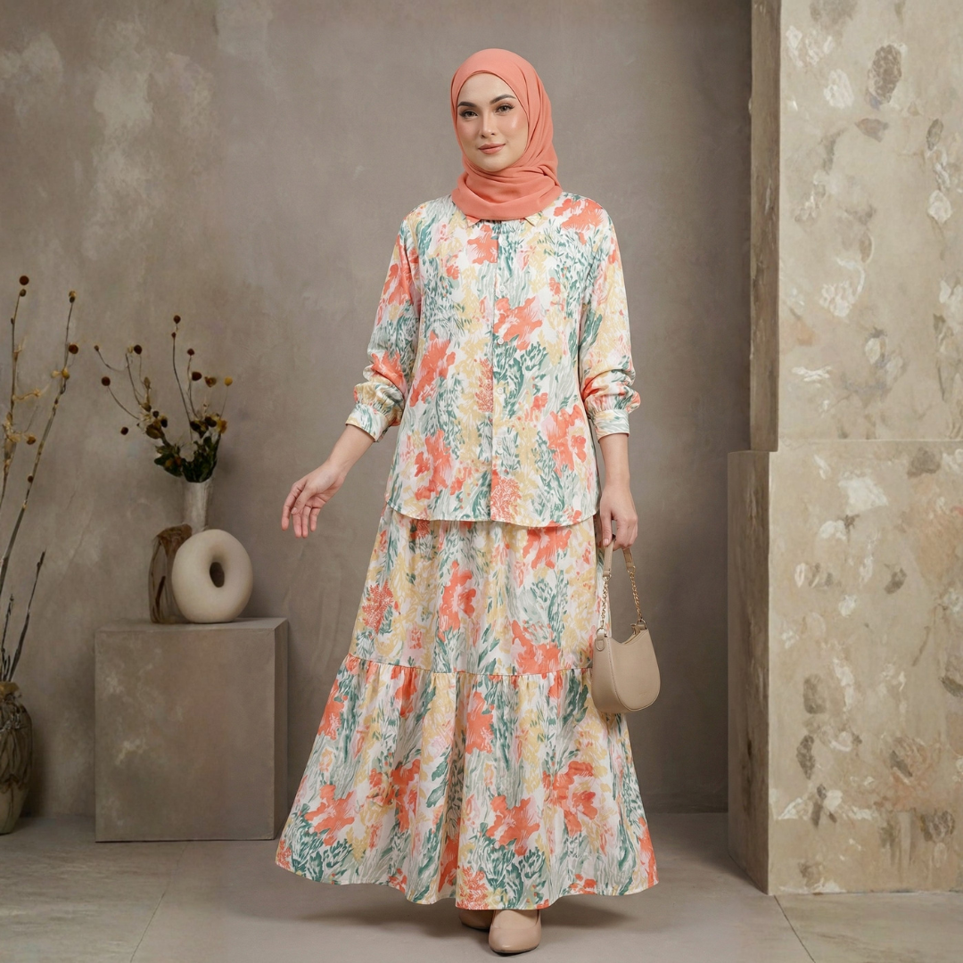 Set feminin bercorak bunga manis yang menampilkan gaya lembut, manis dan effortless. Direka untuk wanita yang sukakan keselesaan dengan tampil bergaya.
