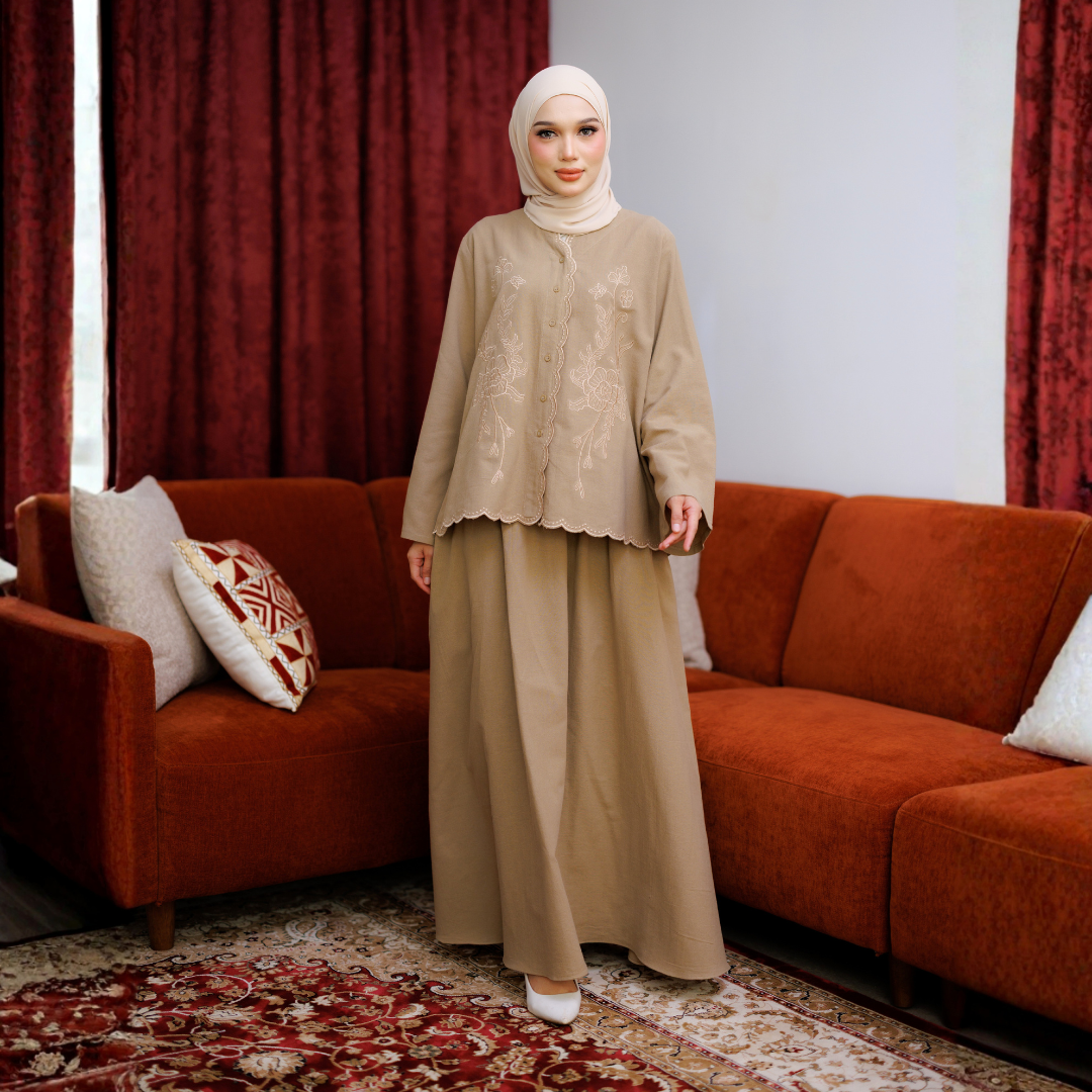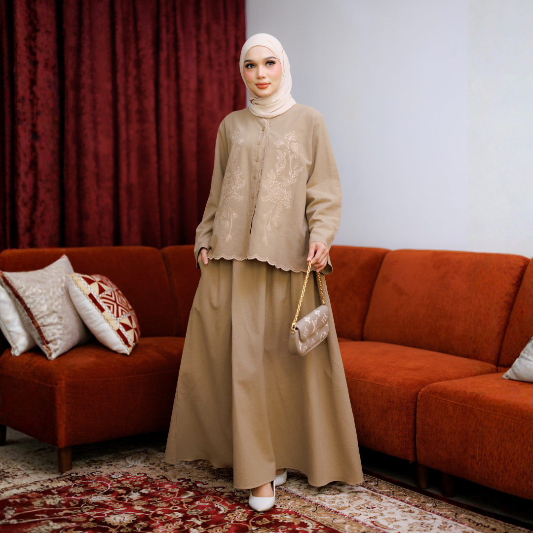 Menampilkan sulam eksklusif di bahagian hadapan, potongan longgar dan flowy memberi keselesaan maksimum sepanjang hari.