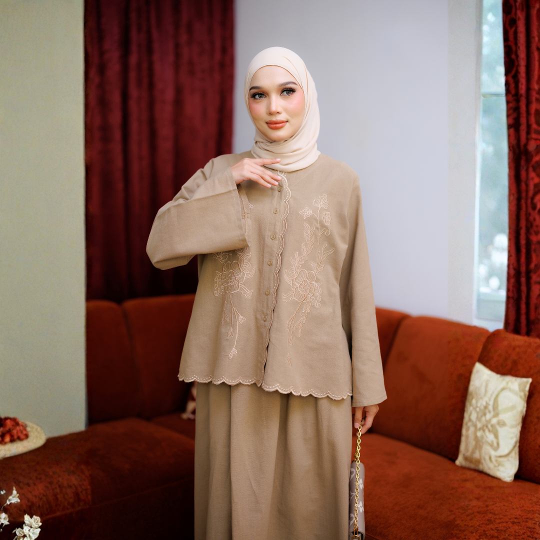 Pesona klasik dengan sentuhan moden — Tallis Bloom direka menggunakan fabrik Cotton Linen Easy Care yang lembut, kemas terletak, dan mudah digosok.