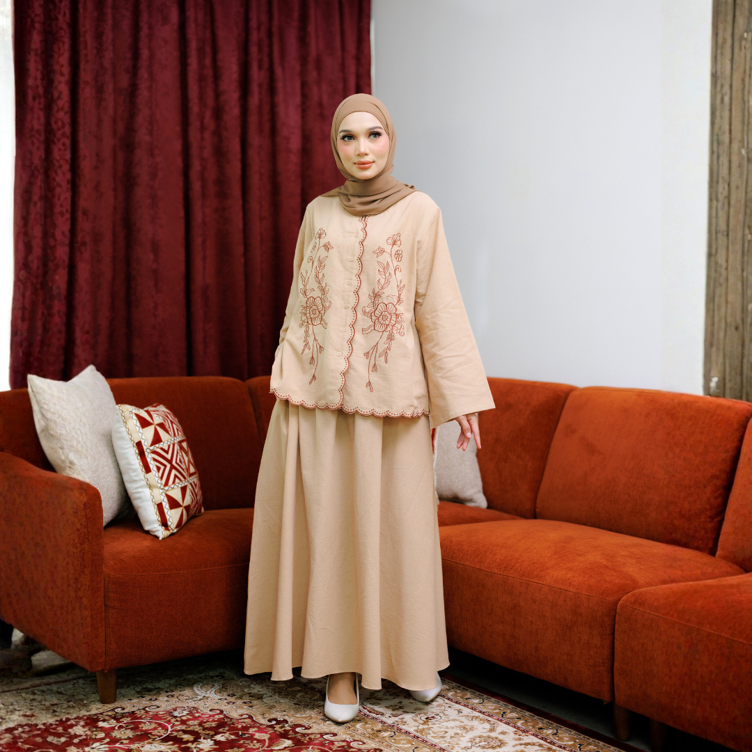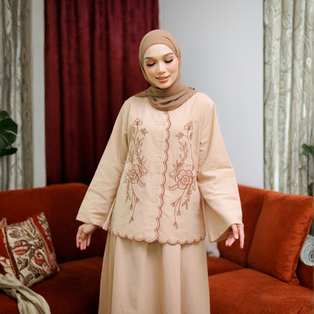 Menampilkan sulam eksklusif di bahagian hadapan, potongan longgar dan flowy memberi keselesaan maksimum sepanjang hari.