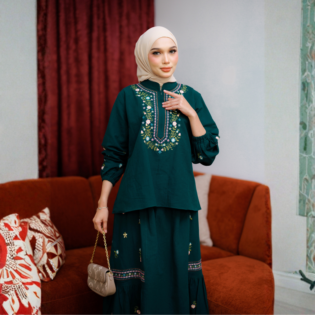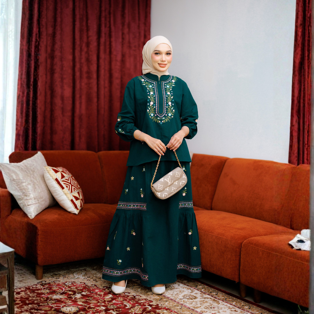 SET TOP DAN SKIRT BERSULAM RINGKAS.